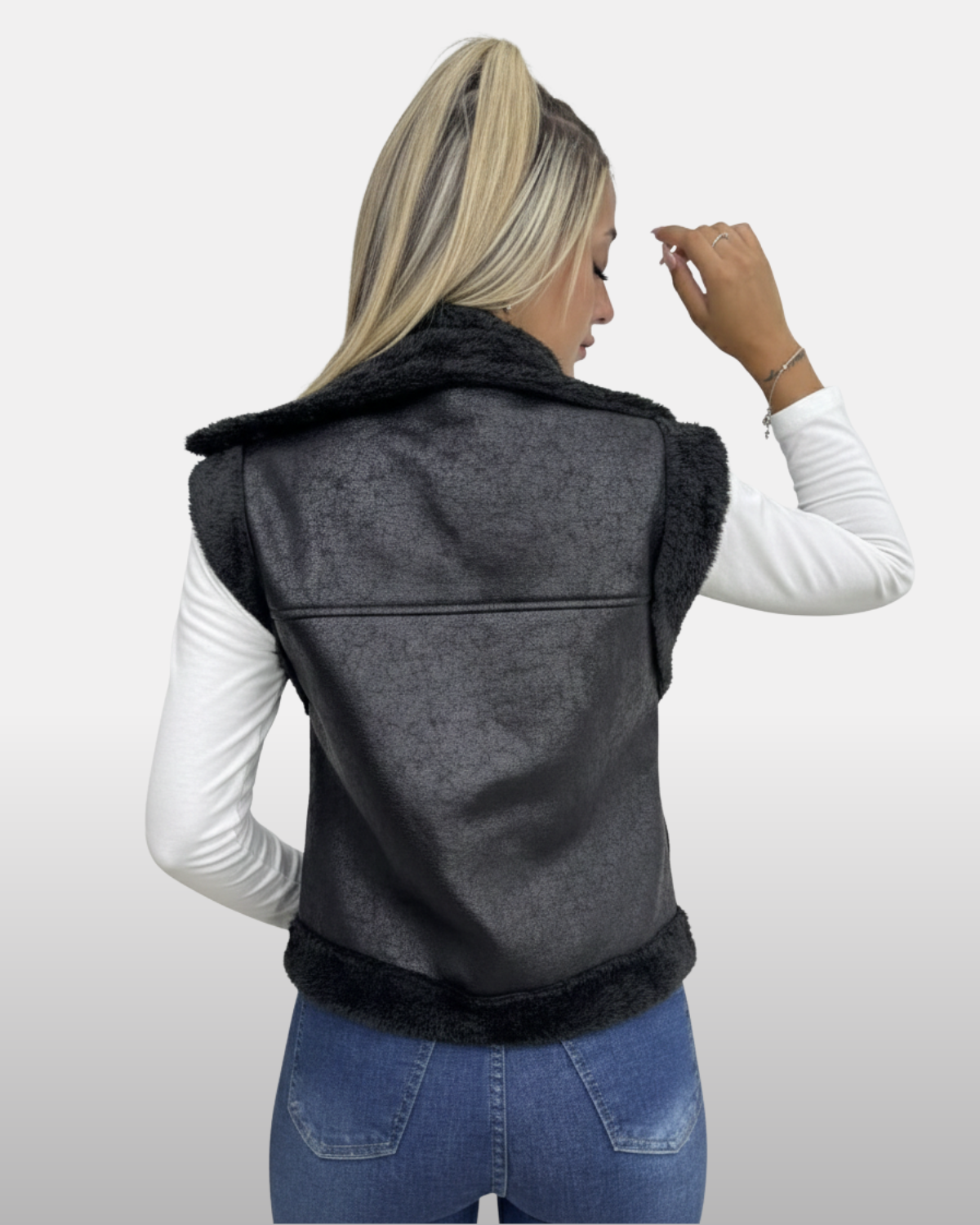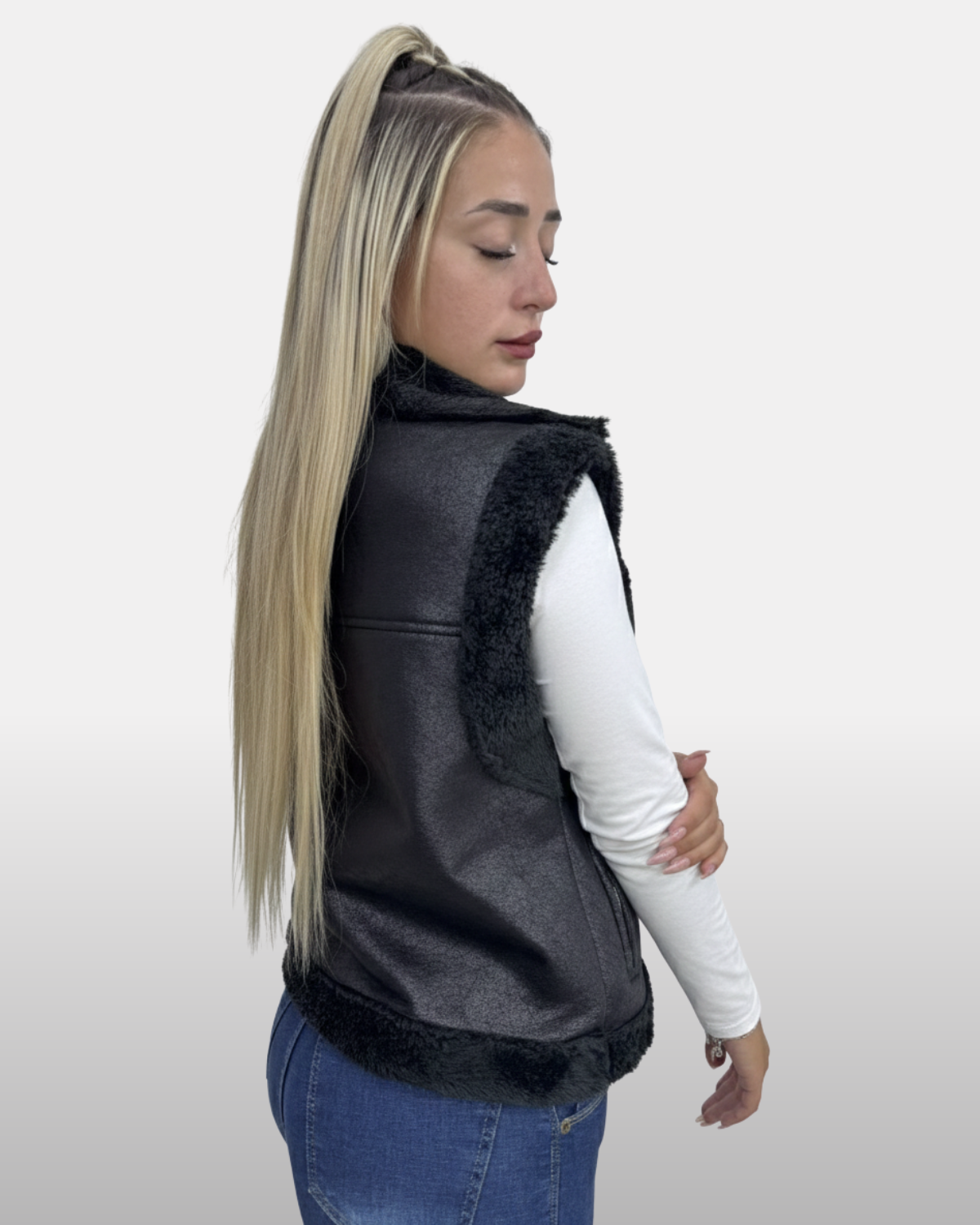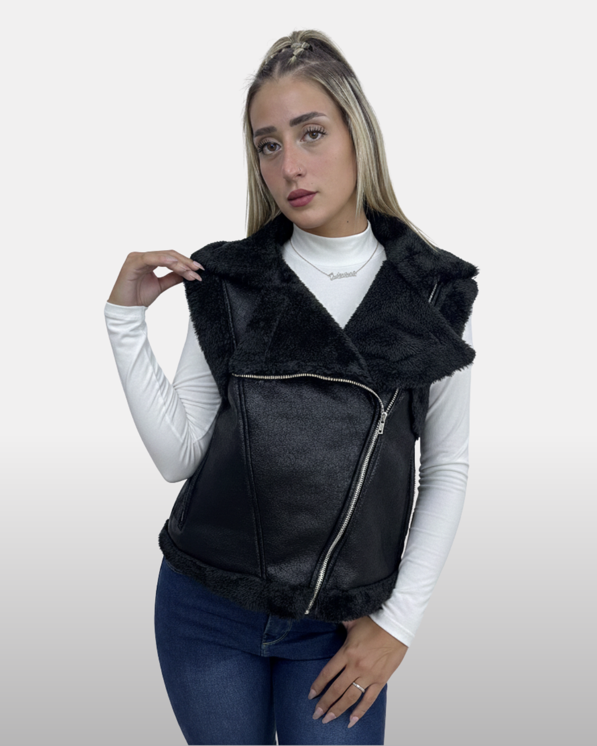 Chaleco Gamulan con Piel en Negro