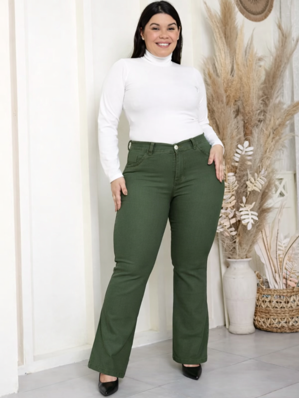 Pantalon Oxford Bengalina Verde Talle Especial Grande Oversize Plus size
