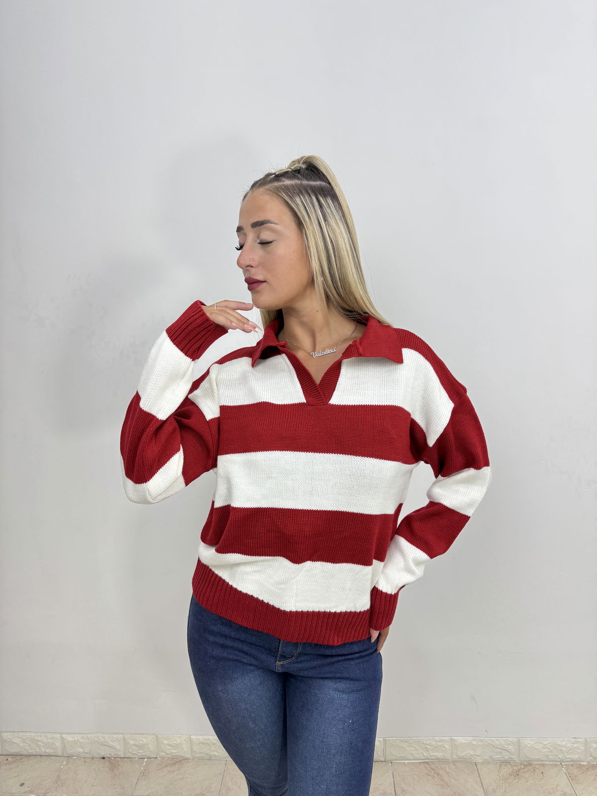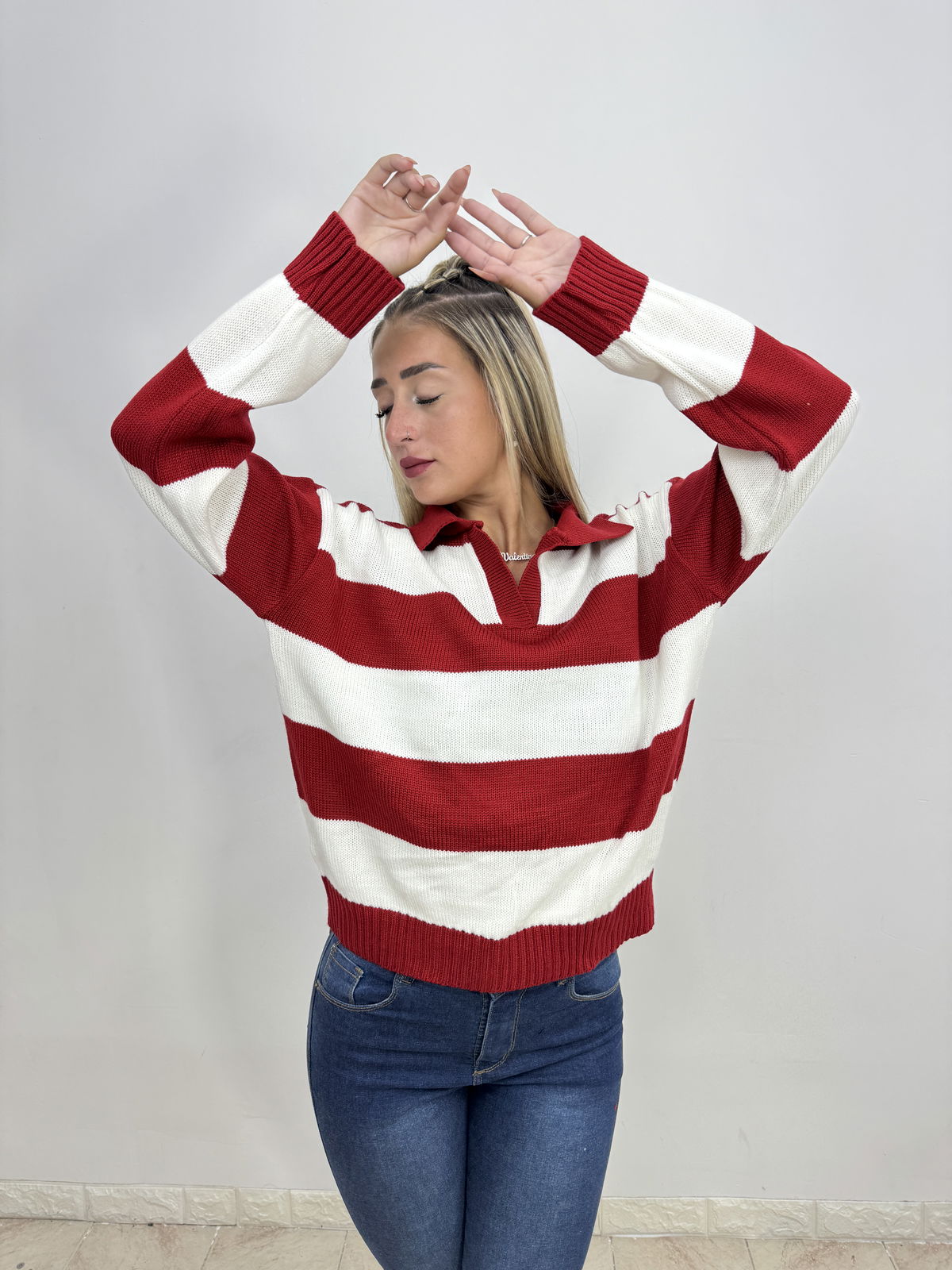 Sueter Polo Chomba Cuello V Rojo